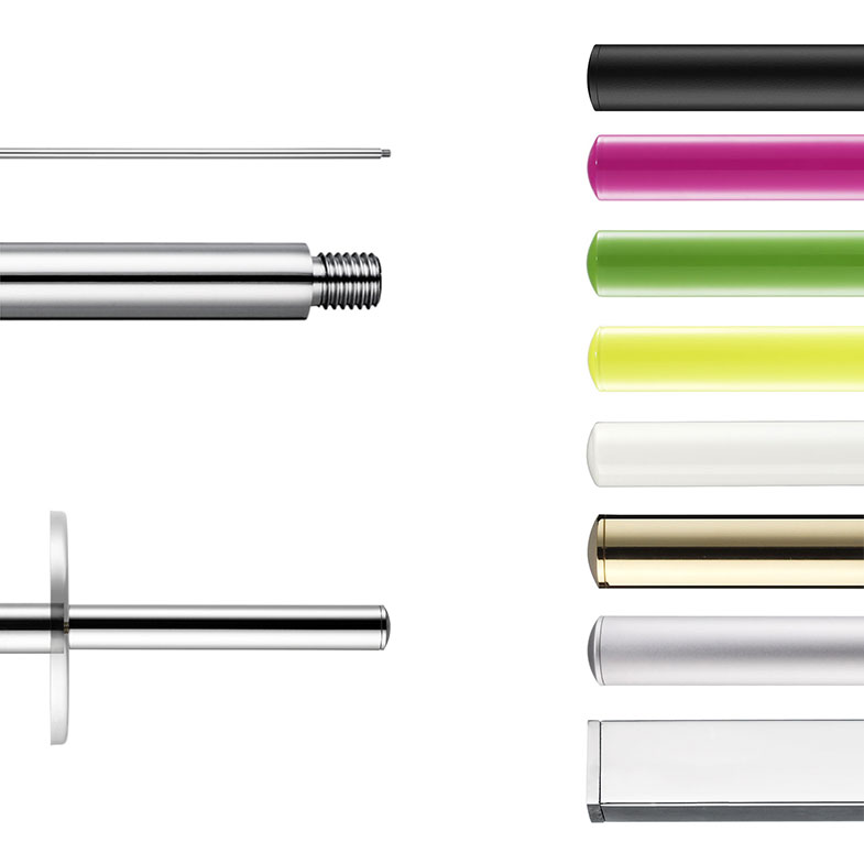 In verschiedenen Formen, Längen, Oberflächen und Materialien erhältlich.